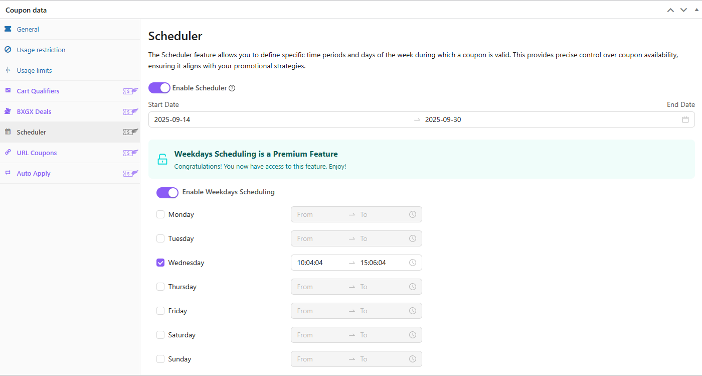 Plan your campaigns in advance. Set start and end dates for coupons so your promotions run on autopilot, perfect for seasonal sales and limited-time offers.